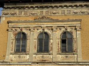 Kiemelt részletek: figurális zárókövek, ion oszlopokra emlékeztető lizénák, fogsormintás vízszintes díszítő sáv, női és férfifejek indás díszítéssel